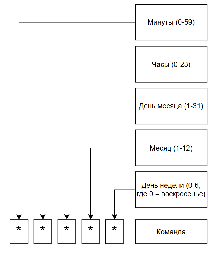 0 0 * * *- каждый день в полночь -